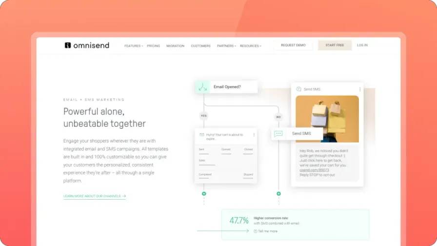 Stream 集成了邮件和短信的系统,帮助独立站卖家将弃单、弃购和弃浏览用户快速召回,同时还可以发送营销邮件和短信以提高增益,给独立站卖家提供了完善的营销运营解决方案。