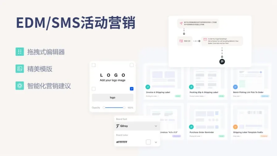 SmartPush 是 SHOPLINE 推出的一款专为中国出海商户提供简易、高性价比、高回报率的EDM&SMS工具。拥有海量的邮件模板库和文件库,帮助跨境电商独立站商家快速创建营销任务,强大的自动化流程可轻松推动店铺转化提升,详细的数据分析报告帮助提高复购和留存率。