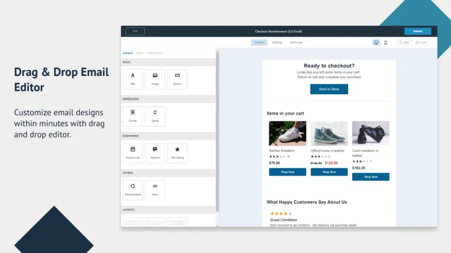 undefined 邮件发送: Omnisend 提供了可靠的邮件发送功能,跨境电商商家可以使用该软件发送大量邮件。该软件支持 SMTP 和 POP3 协议,并支持多个发送引擎和发送服务器。