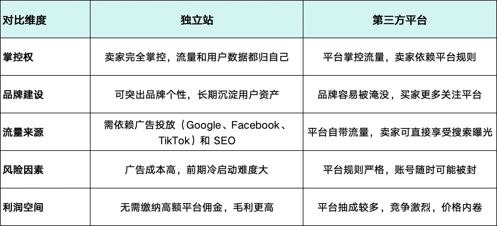 很多卖家会疑惑:独立站与亚马逊、eBay、Shopee 有什么本质差异?