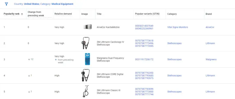 您还可以使用 Google Merchant Center 查看您所在行业的热门产品。这些“畅销商品”基于您自己的 Google 购物 Feed 中的产品。