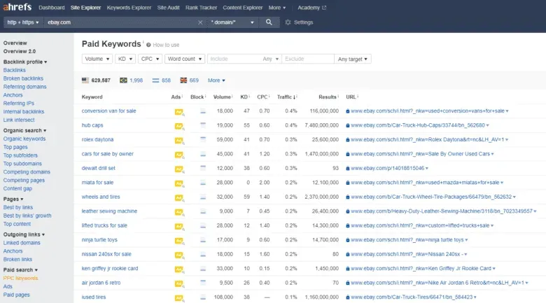 您可以使用Ahrefs 的“站点浏览器”选项来评估竞争对手的付费搜索工作。添加适当的竞争对手域,导航到“付费搜索”,然后使用 Ahrefs 的数据查看竞争对手对哪些 PPC 关键字进行排名、他们的热门广告是什么以及哪些页面带来了最多的付费搜索流量。