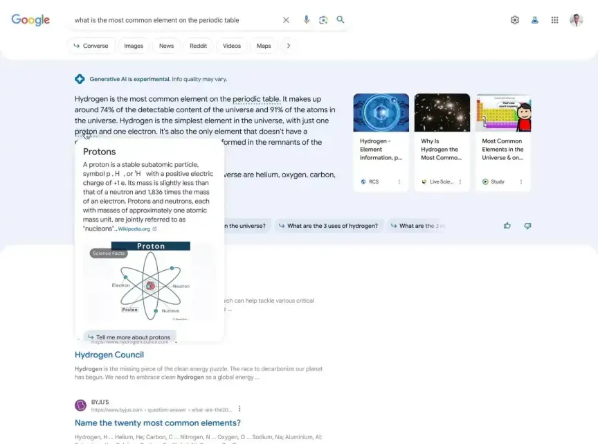 一句话介绍谷歌的SGE(Search Gnerative Experience,生成式搜索结果体验)就是: