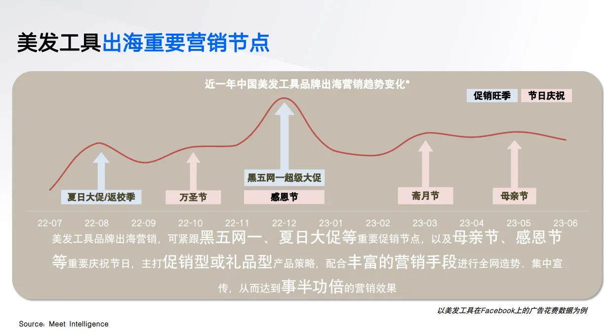 美发工具的出海也要紧跟重要的促销节点和节日节点,相对于采取一些促销型或礼品型产品策略。并通过全网宣传和营销手段,如社交媒体广告、电子邮件营销和合作推广,才能达到事半功倍的品牌营销效果,吸引更多消费者的关注和购买。