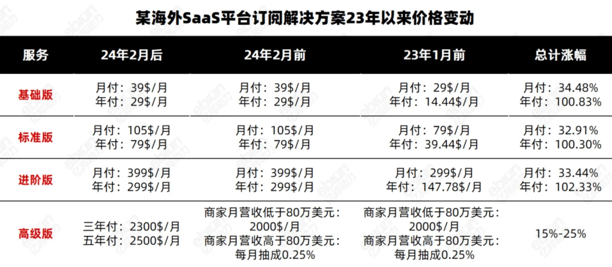 不过,更露骨的“逐客压力”源于其收费策略:为转嫁财务压力而屡次上调订阅费与交易抽成比例,致使部分服务的价格成番上涨。