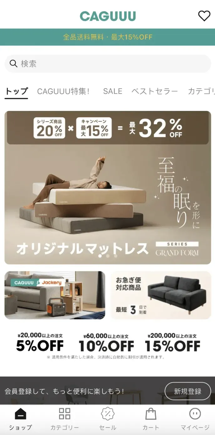 例如深耕日本市场的家居品牌卡谷(CAGUUU),便受益于SHOPLINE高度开放灵活、强水平拓展、高弹性伸缩的架构体系: