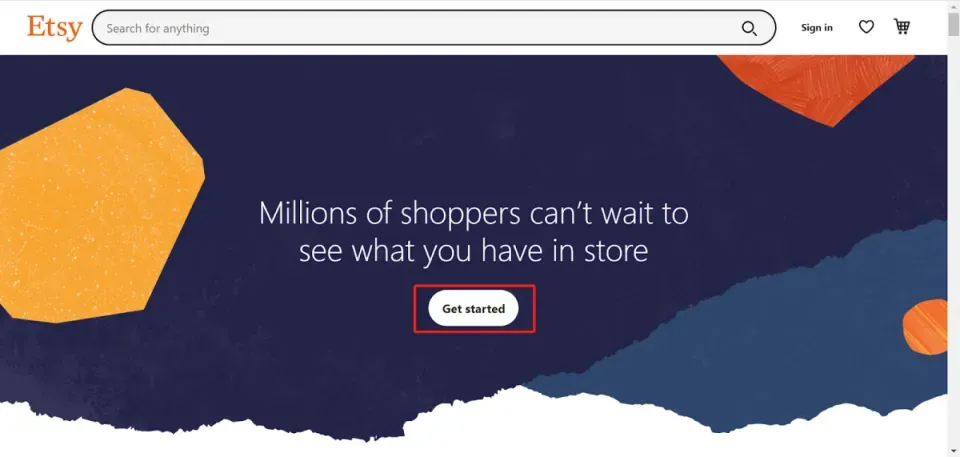 进入Etsy官网,点击”get started” 注册一个Etsy卖家账户。