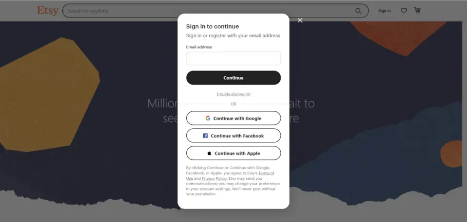 ETSY允许跨境电商卖家通过Sell on Etsy应用程序分享Facebook,Instagram,Twitter和Pinterest等网站的重要更新。