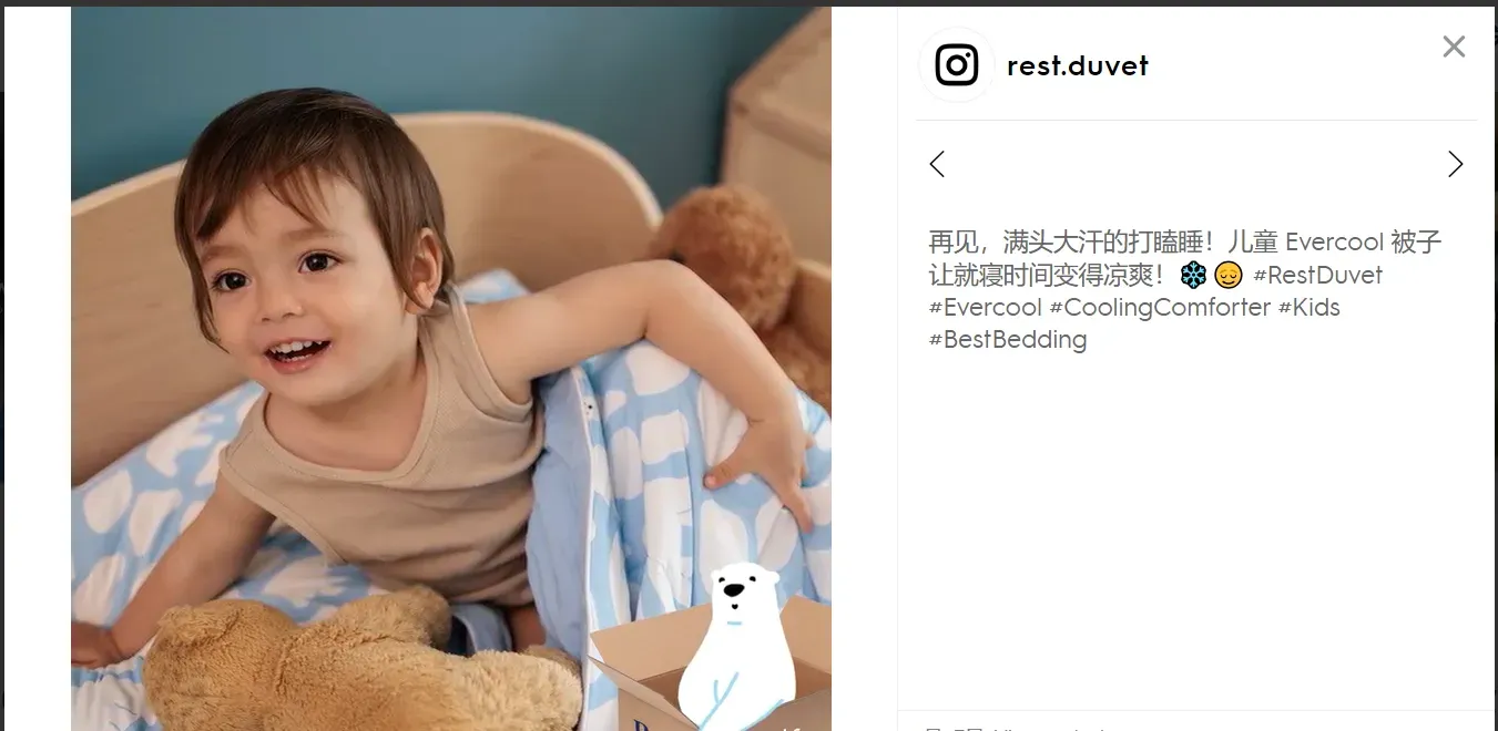对于儿童来说,床上用品的品质非常重要。家长通常会选择更适合儿童肤质的产品。为了向家长传达这一信息,Rest家居的网页中出现了许多以儿童和产品为主体的合照。这种设计潜移默化地告诉家长,Rest的产品非常适合您家的孩子使用。