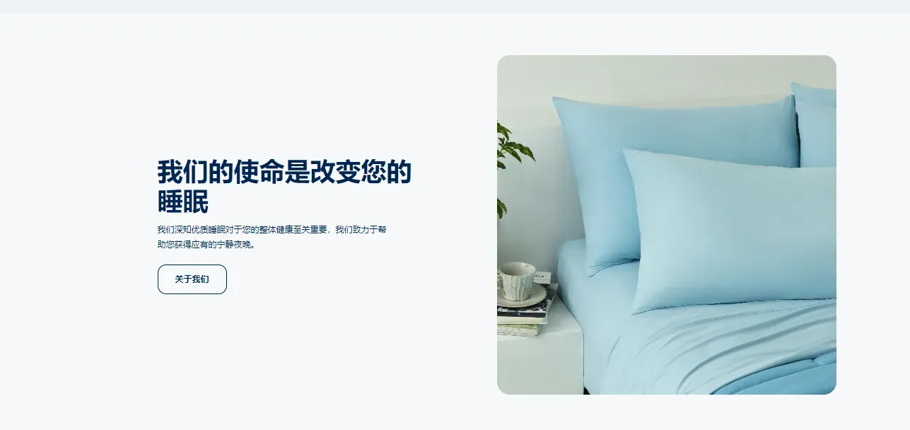 从颜色上,Rest家居的独立站网站设计巧妙运用了深蓝、浅蓝和灰色作为主要配色方案。这种色调给人一种舒适、平和的感觉,同时还融入了一些高科技和高级感的元素。这与Rest家居产品介绍中关于天然原材料和温度调控技术的描述非常吻合,进一步塑造了科技产品的形象。通过这种配色选择,Rest家居成功营造了一个既舒适又现代化的氛围,让用户在浏览网站时感受到品牌的专业和创新。