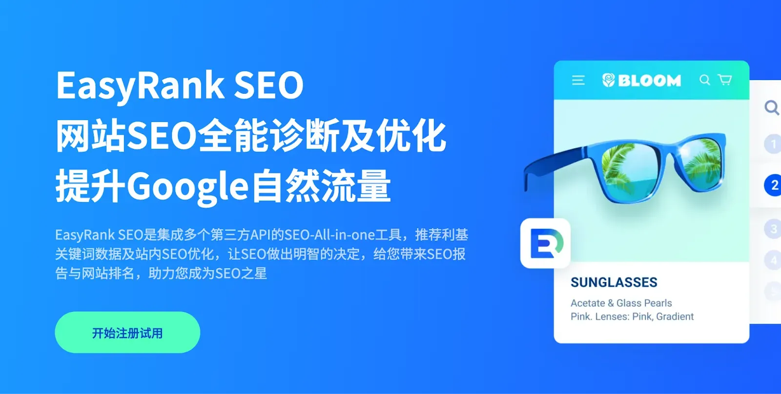 市面上有很多优化SEO的工具推荐,SHOPLINE也推出了一款一体化的SEO优化工具Easyrank SEO,它能够简化你的搜索引擎优化过程,不论是收集关键现场数据还是自动报告,它都能帮您轻松搞定,让您的工作更加清晰有效。