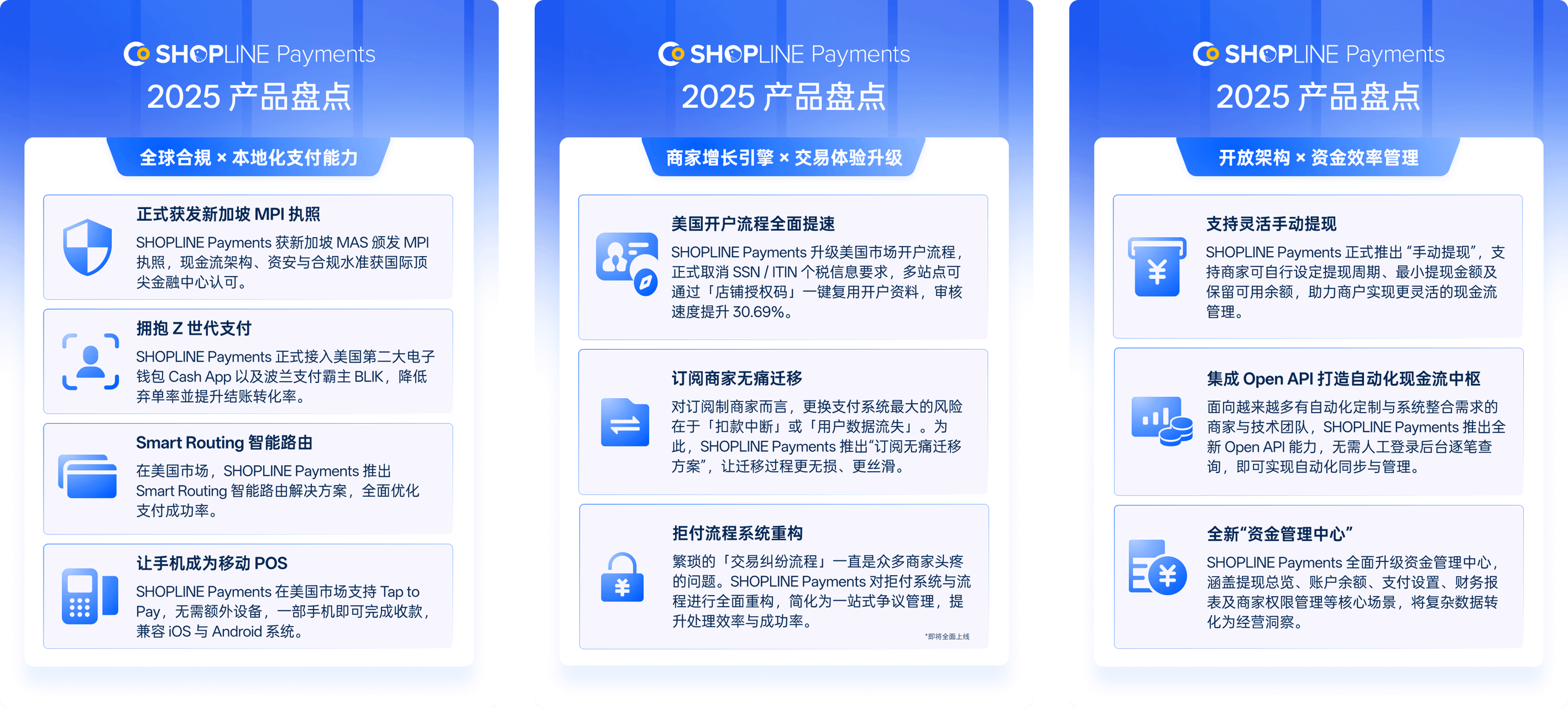 因此,在 2025 年,SHOPLINE Payments 围绕三个核心方向实现了全面的优化升级: