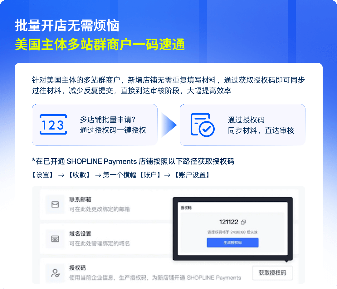 以更简单的材料、更高效的审核、更优越的成功率,助力美国主体商家轻松实现业务起步。