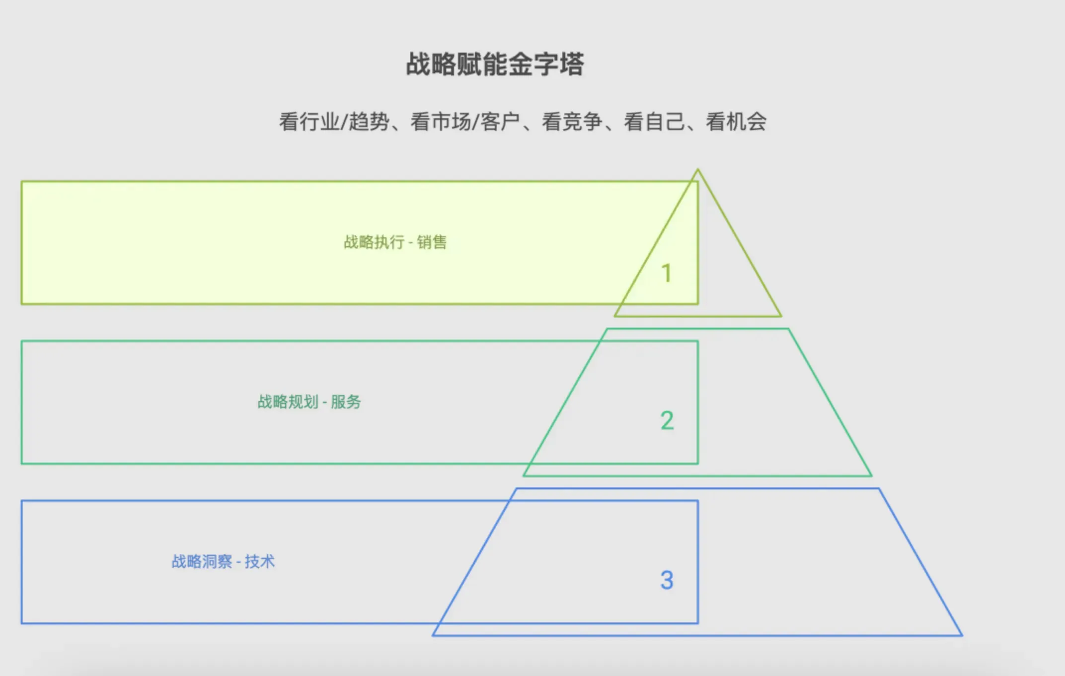 借鉴华为的“铁三角服务”理论,SHOPLINE将客户成功刻进组织基因。通过销售、服务、技术三者的紧密协作,完成整套服务体系。同时结合“五看三定”管理方法论,通过“五看”(看行业/趋势、看市场/客户、看竞争、看自己、看机会)进行战略洞察,再通过“三定”(定战略控制点、定目标、定策略)制定战略规划,最终实现战略解码与执行,体系化赋能客户。