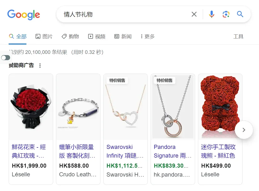 根据你的产品类型,在你的产品前面增加“情人节”三个字,可以提高曝光度,以吸引那些正在寻找特定礼品的购物者。