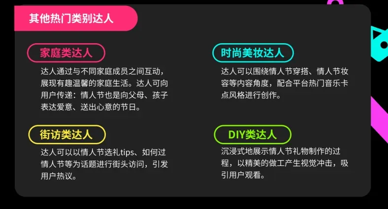 通过与红人合作创作节日相关内容以促进销售已是TikTok这类社交媒体平台做产品宣传的常用方式,红人给予用户节日选礼灵感并激发用户购买的效应近年来都比较出色,据TikTok数据统计,47%的消费者在节日的选礼灵感来源于红人推荐,38%的用户因为 TikTok红人的推荐购买了商品。因此,如何做好TikTok节日营销?一大关键便是选择符合品牌调性的红人,并根据其所长策划好作品内容。