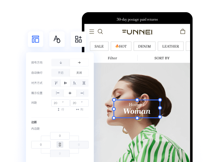 支持无缝、精准地将 Block (模块) 拖放定位到商店中的任意位置,可灵活调整的布局让您释放无限创意
