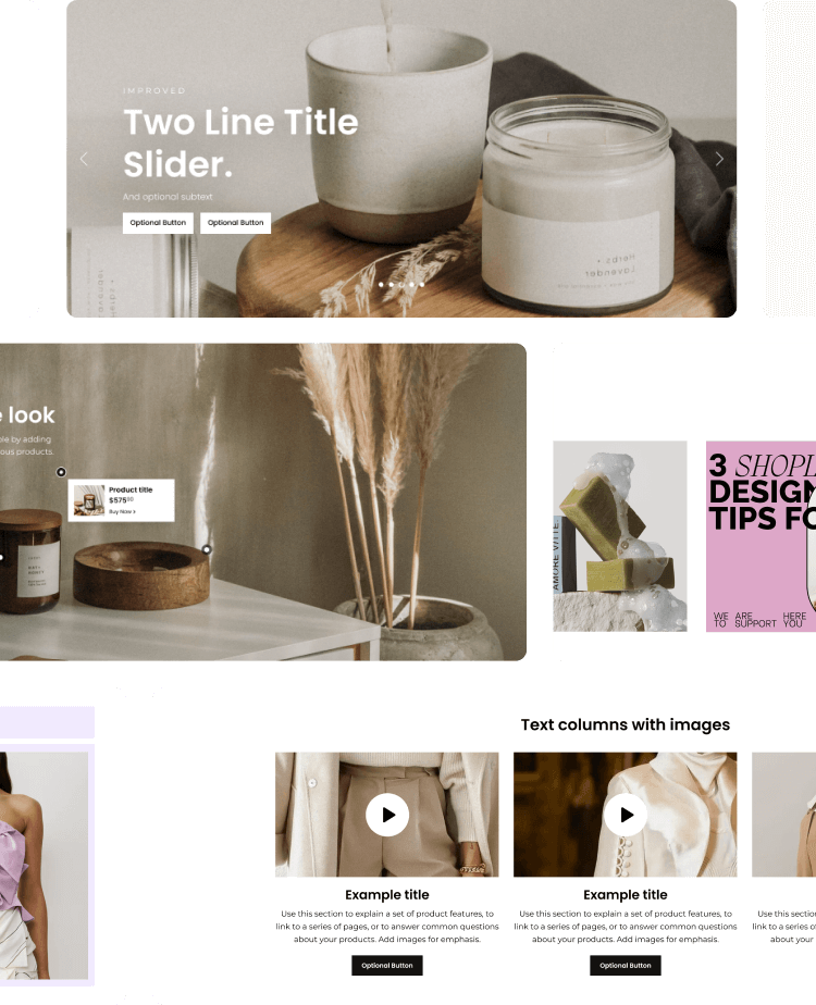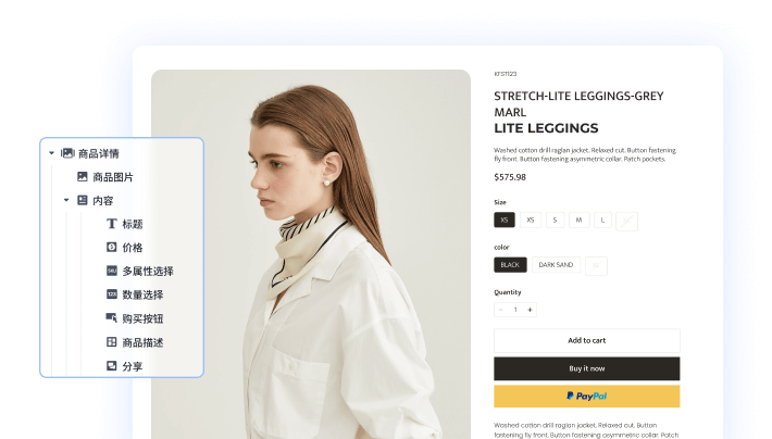 SHOPLINE 高阶组件库提供丰富的预设效果,支持您像“拼图”一样自由组合内容,为独立站商品打造最佳的视觉呈现效果
