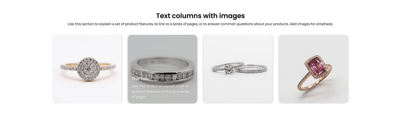 SHOPLINE 高阶组件库提供丰富的预设效果,支持您像“拼图”一样自由组合内容,为独立站商品打造最佳的视觉呈现效果