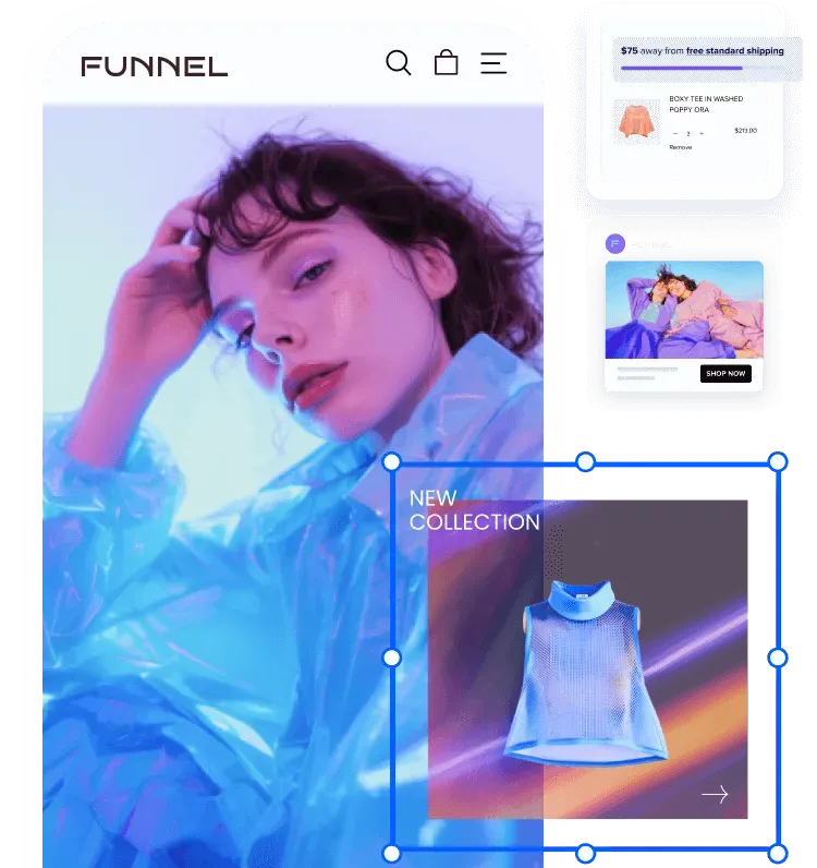 支持无缝、精准地将 Block (模块) 拖放定位到商店中的任意位置,可灵活调整的布局让您释放无限创意